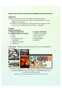 I. RA 10121: "Philippine Disaster Risk Reduction and Management