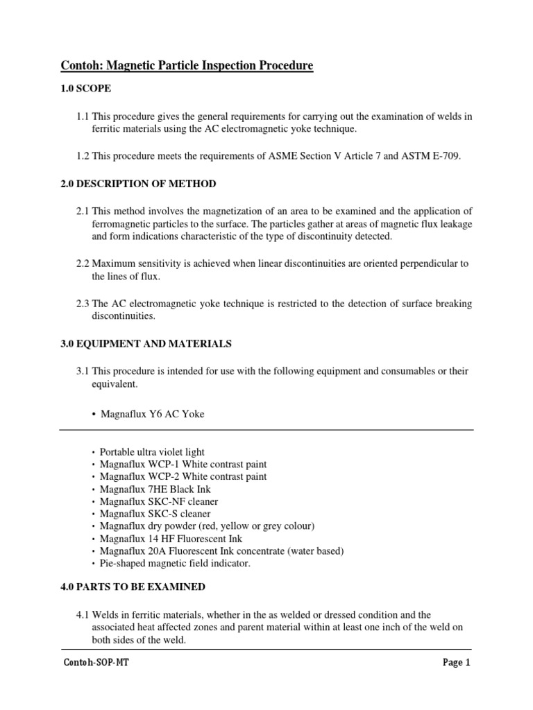 1.1 This procedure gives the general requirements for carrying out the examination of welds in