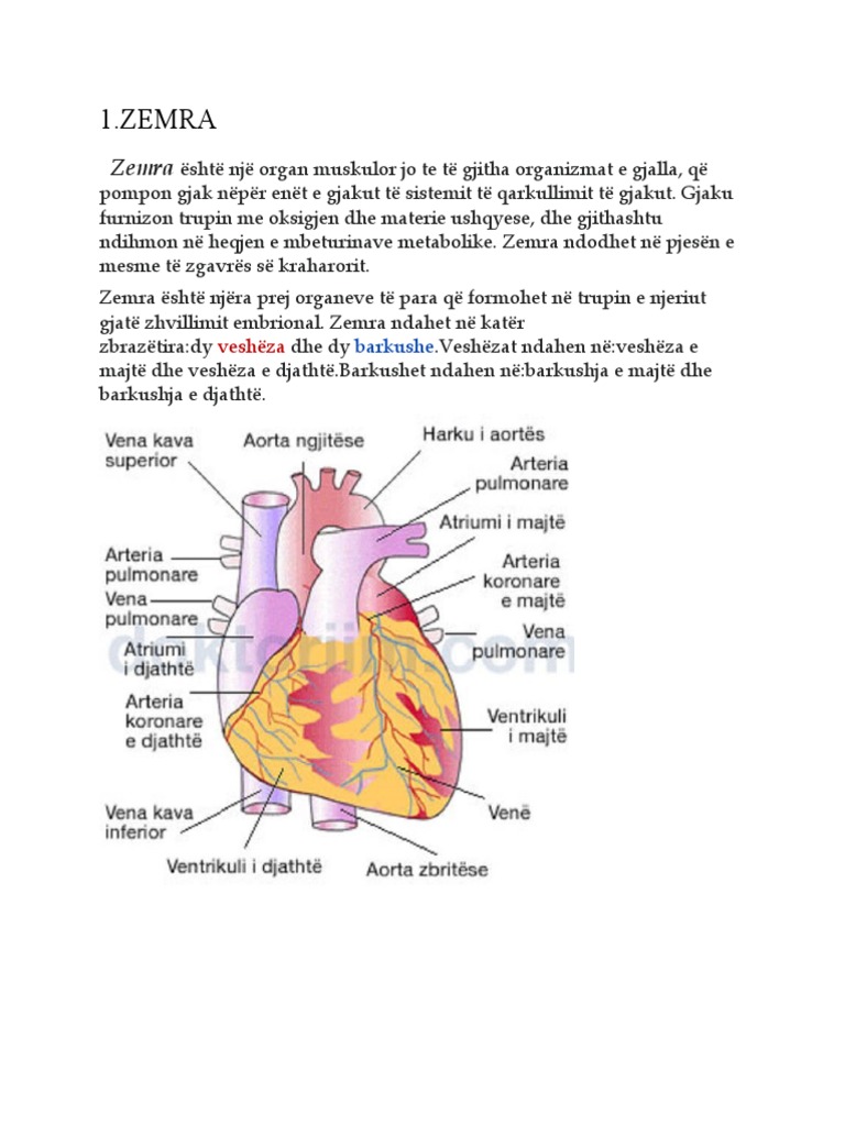ndihmon në heqjen e mbeturinave metabolike. Zemra ndodhet në pjesën e