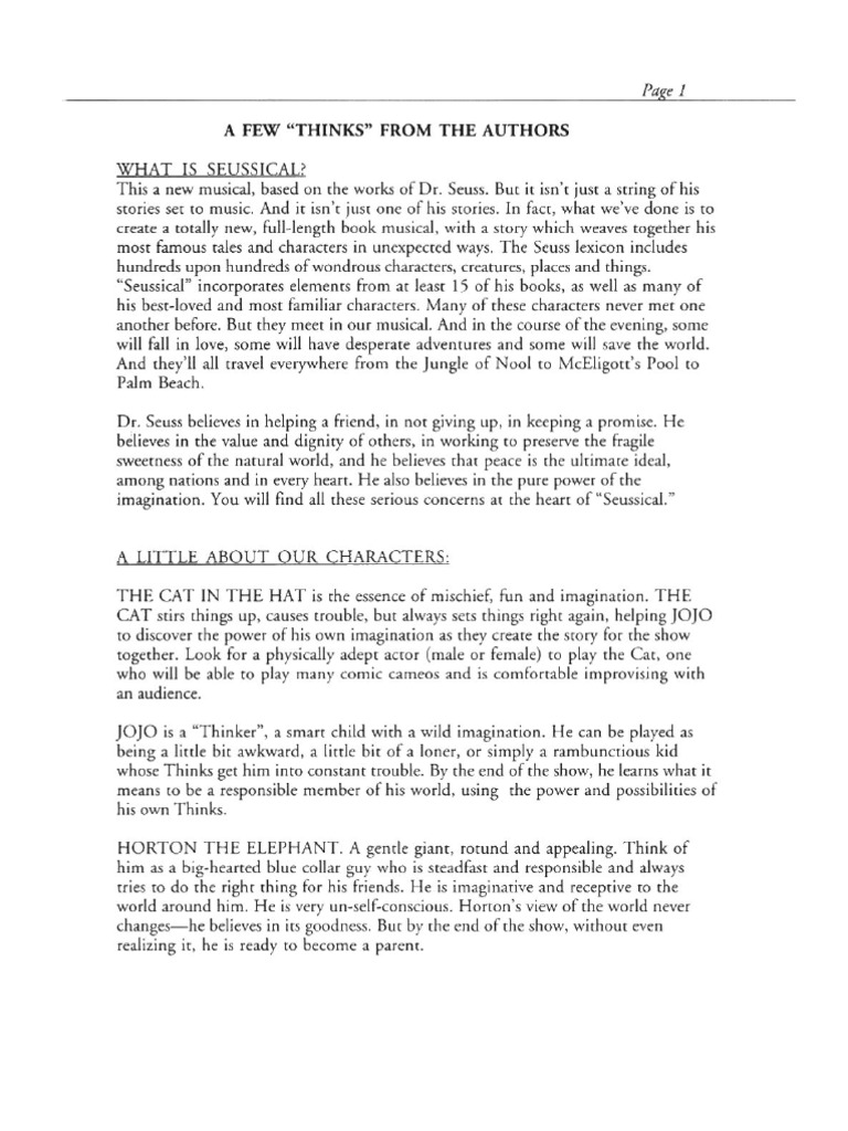 This a new musical, based on the works of Dr. Seuss. Buc i Vt just a string of his