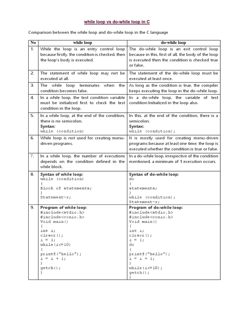 1. While the loop is an entry control loop The do-while loop is an exit control loop