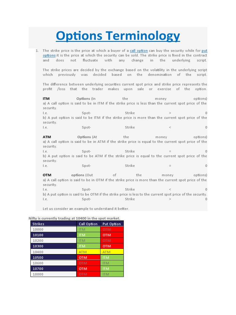Options Terminology