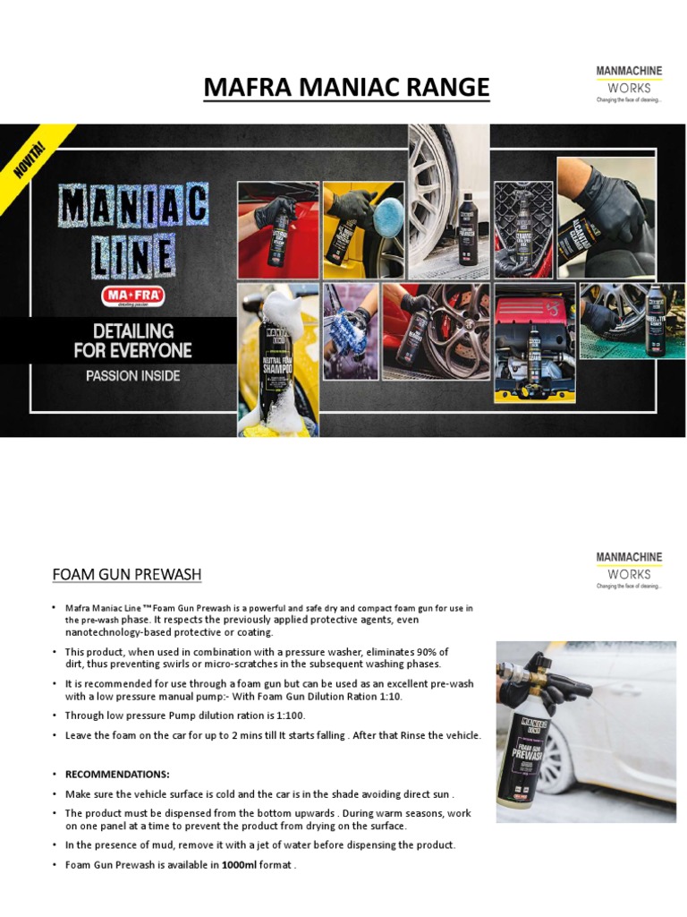 • Mafra Maniac Line ™ Foam Gun Prewash is a powerful and safe dry and compact foam gun for use in