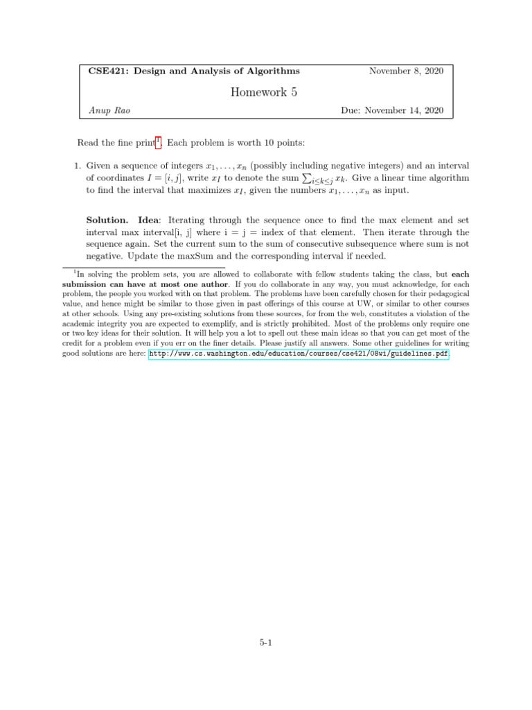 of coordinates I = [i, j], write xI to denote the sum i≤k≤j xk . Give a linear time algorithm