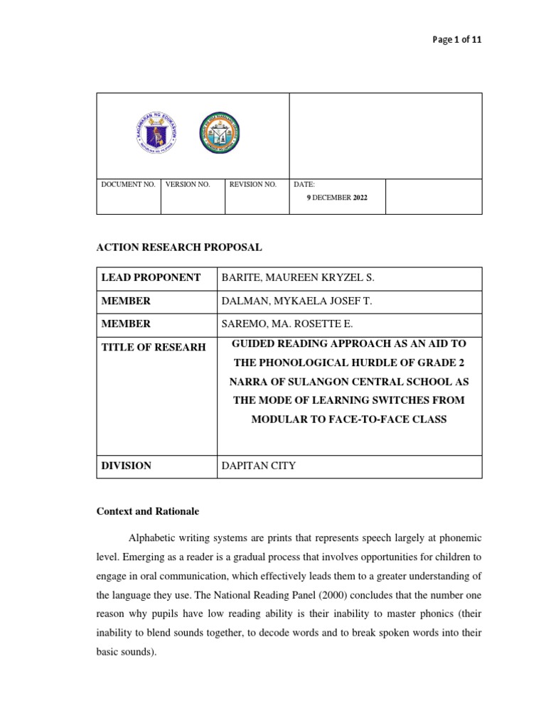 TITLE OF RESEARH GUIDED READING APPROACH AS AN AID TO