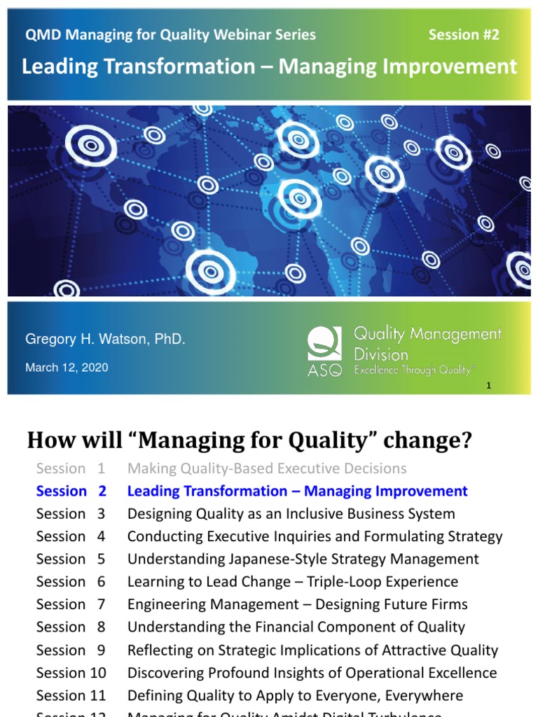 Managing for Quality Webinar Series by Dr Gregory H. Watson: