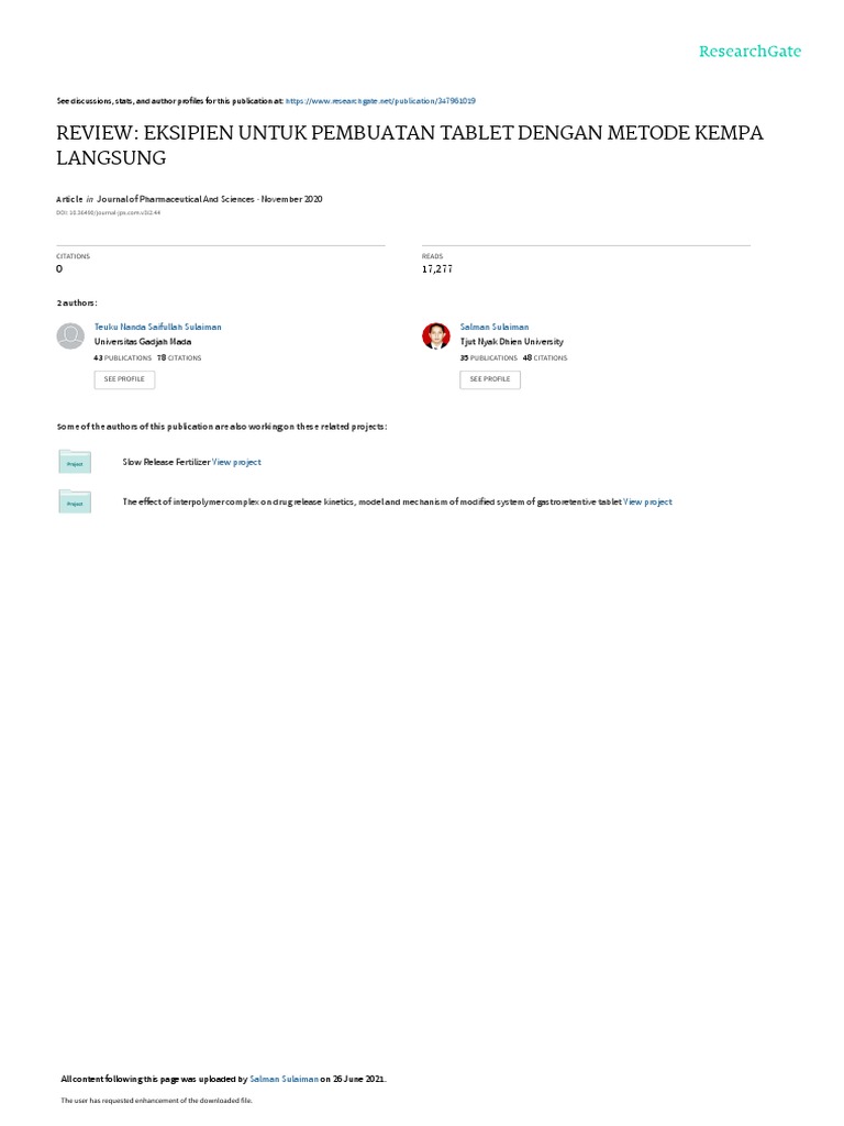 Review: excipients for tablet ……… Teuku Nanda Saifullah Sulaiman & Salman