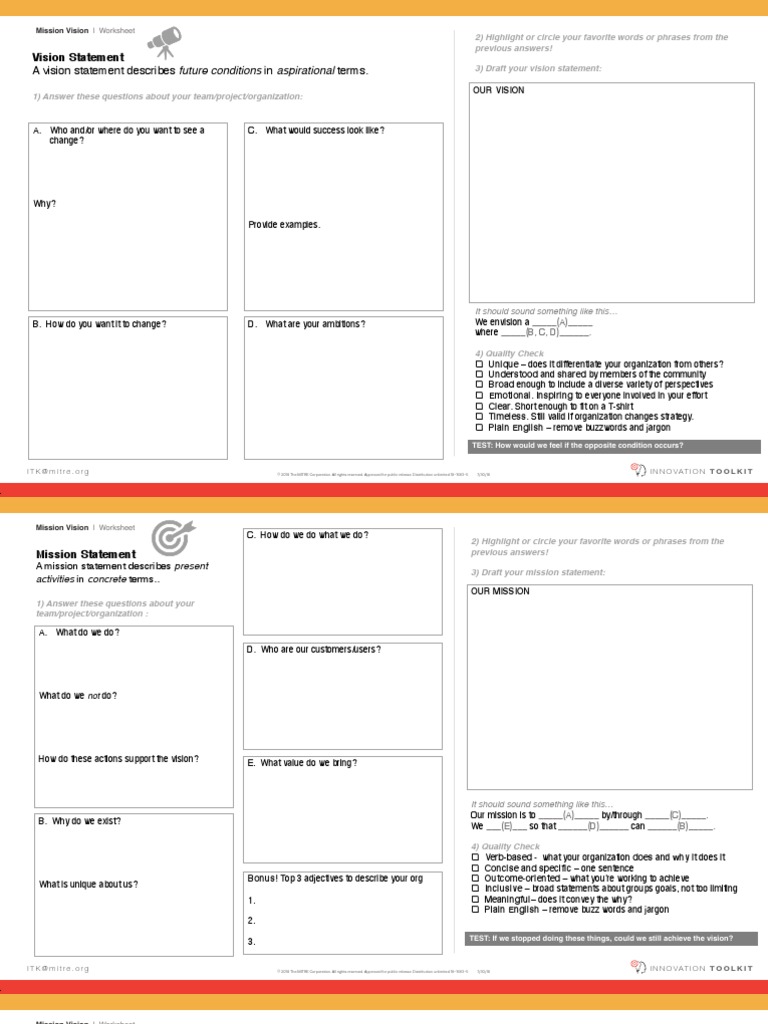 A vision statement describes future conditions in aspirational terms. 3) Draft your vision statement: