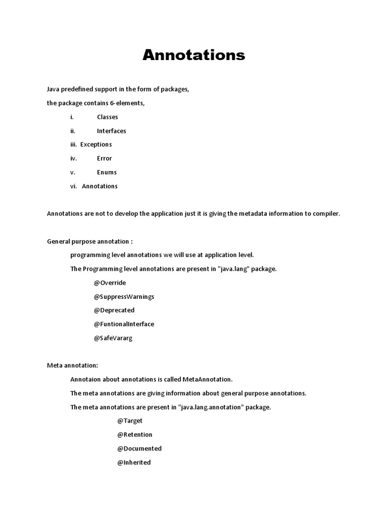 The meta annotations are giving information about general purpose annotations.