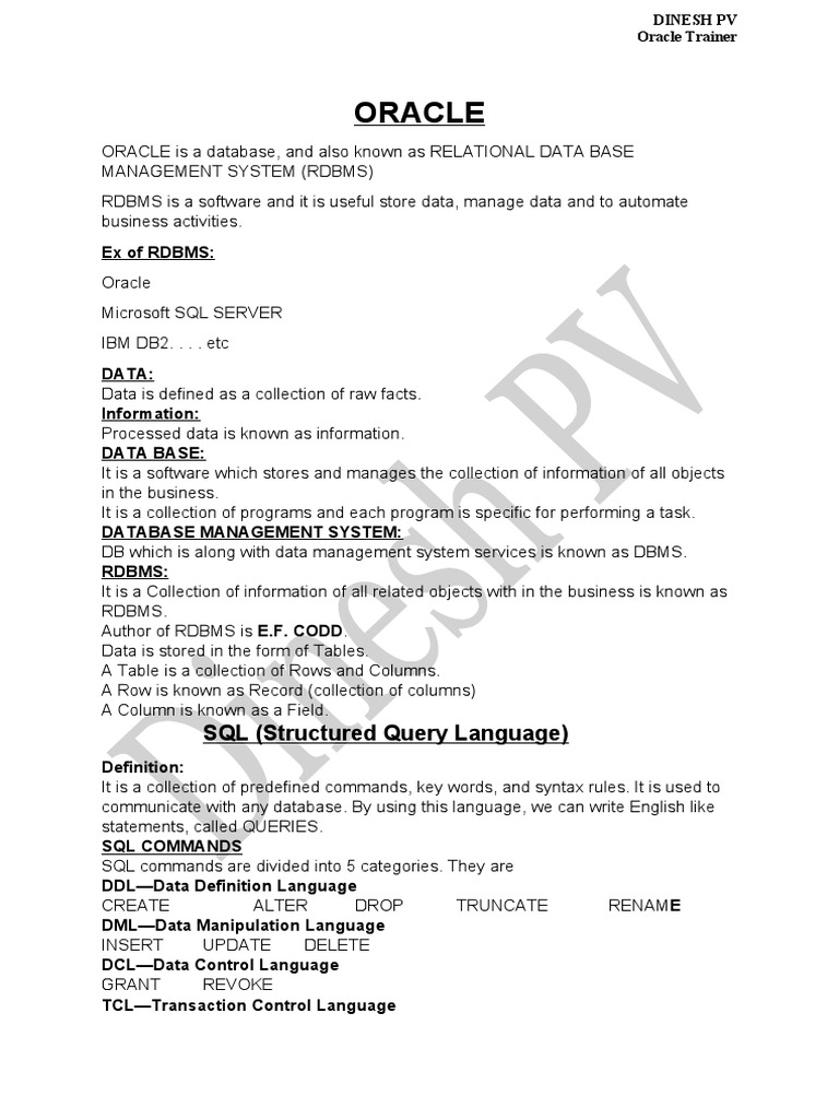 ORACLE is a database, and also known as RELATIONAL DATA BASE