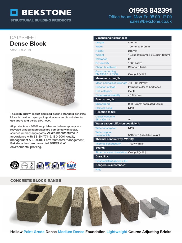Bekstone has been awarded BREEAM A* Thermal conductivity 1.00 W/(m.k)