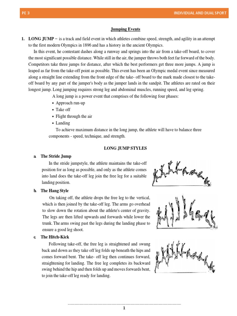 1. LONG JUMP – is a track and field event in which athletes combine speed, strength, and agility in an attempt