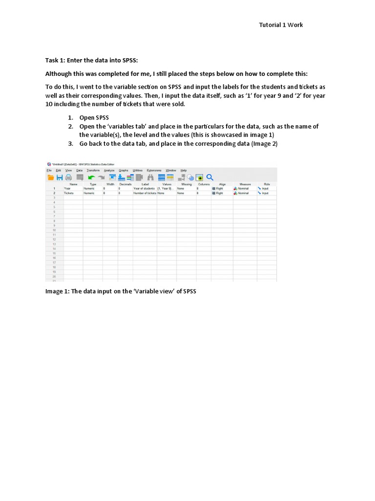 Task 1: Enter the data into SPSS: