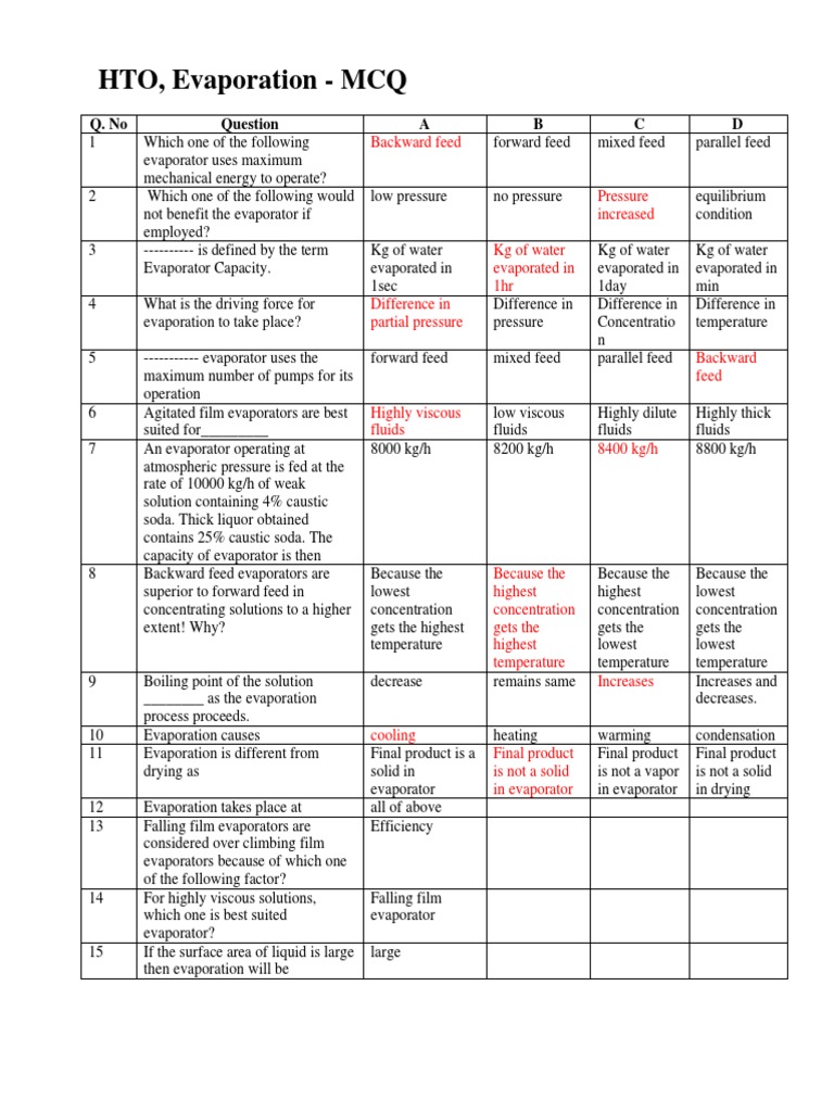 HTO, Evaporation - MCQ