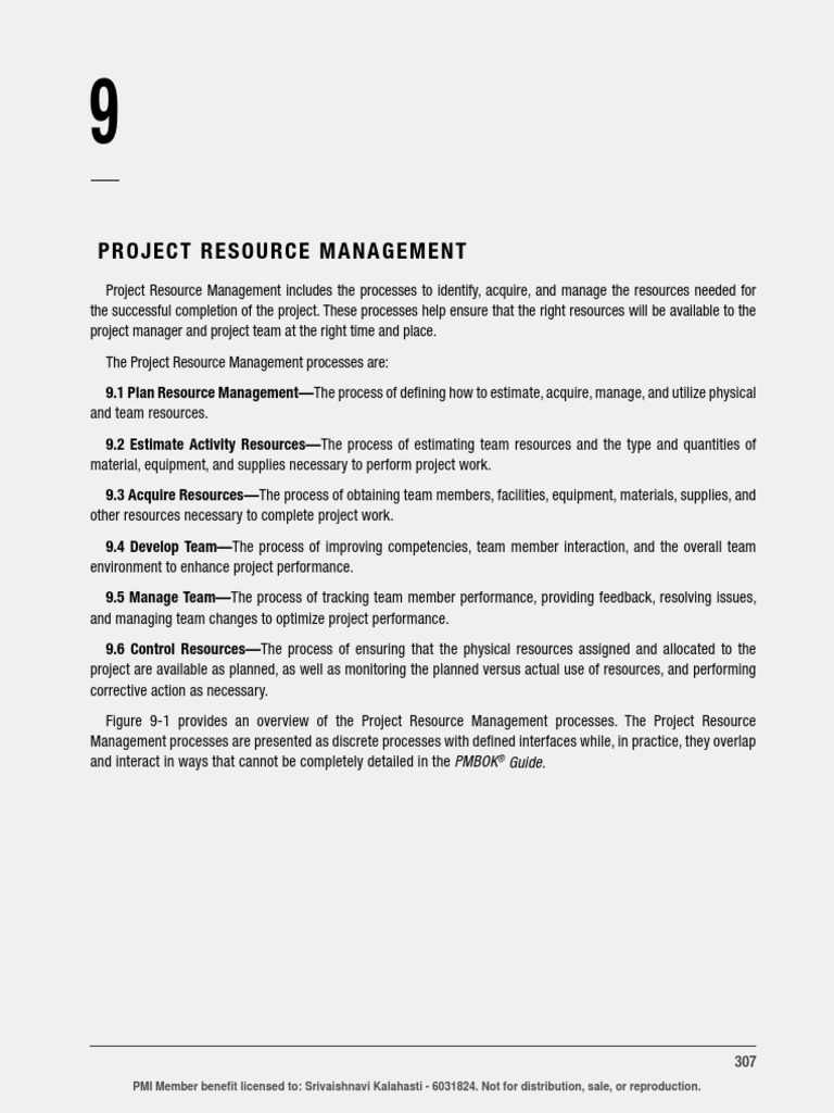 Figure 9-1 provides an overview of the Project Resource Management processes. The Project Resource