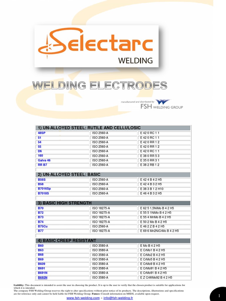 are for reference only and cannot be held liable for FSH Welding Group. Fumes: Consult information on MSDS, available upon request.