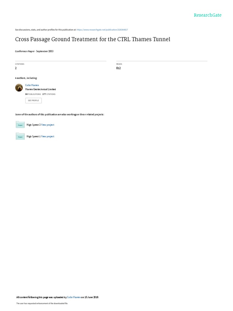 Cross passage Ground Treatment for the CTRL Thames Tunnel