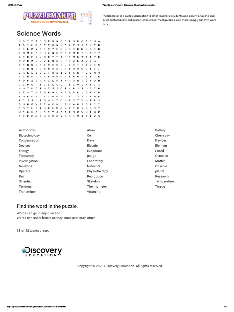 1/9/23, 11:17 AM Word Search Puzzle | Discovery Education Puzzlemaker