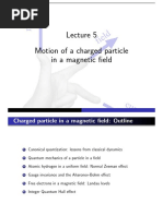 This was the classical mathematical structure that led Dirac to link up classical and quantum mechanics: he realized that the Poisson brackets were the classical version of the commutators, so a classical canonical momentum must correspond to the quantum differential operator in the corresponding coordinate. Particle in a Magnetic Field The Lorentz force is velocity dependent, so cannot be just the gradient of some potential. Nevertheless, the classical particle path is still given by the Principle of Least Action. The electric and magnetic fields can be written in terms of a scalar and a vector potential: B = A, E = The right Lagrangian turns out to be: