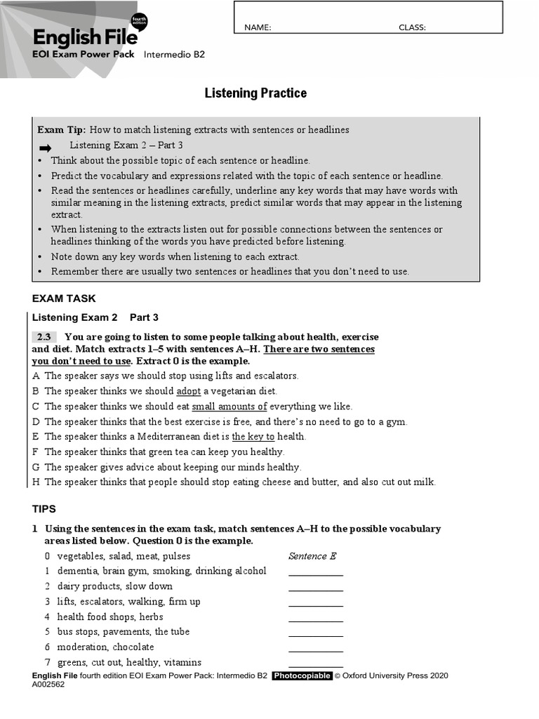 English File fourth edition EOI Exam Power Pack: Intermedio B2 Photocopiable © Oxford University Press 2020