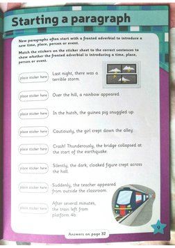 Answers on page 32New paragraphs often start with a fronted adverbial to introduce a