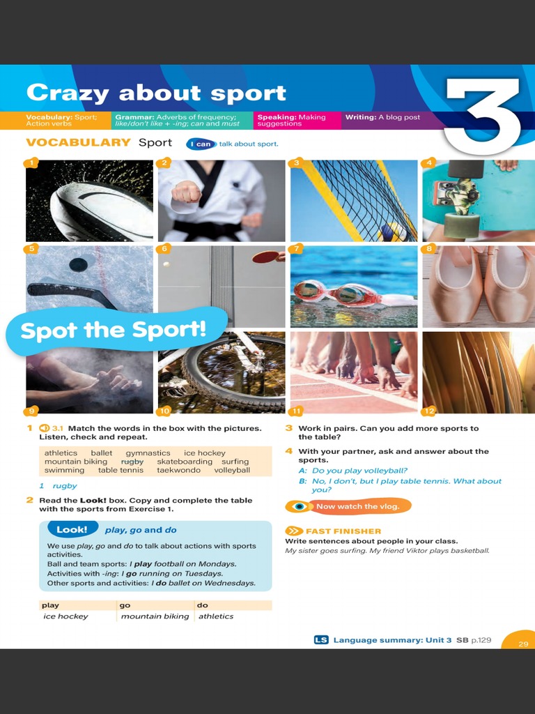 with the sports from Exercise 1. Now watch the vlog.