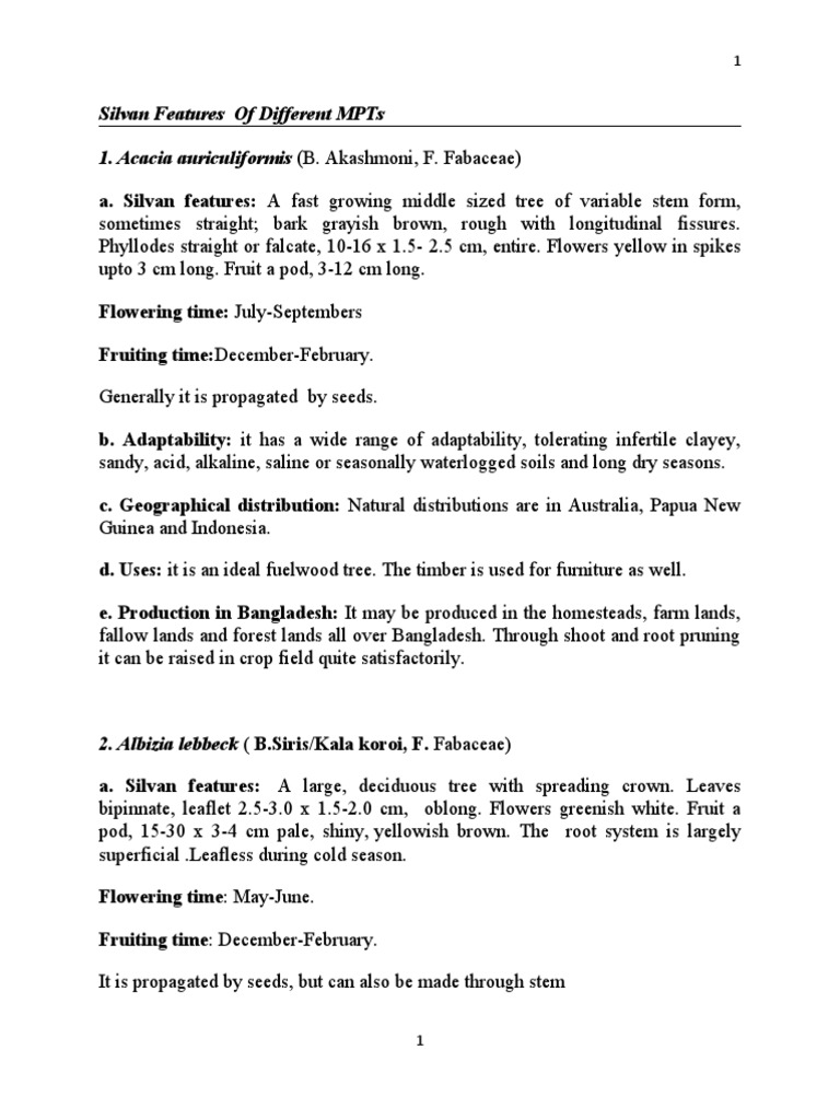 1. Acacia auriculiformis (B. Akashmoni, F. Fabaceae)