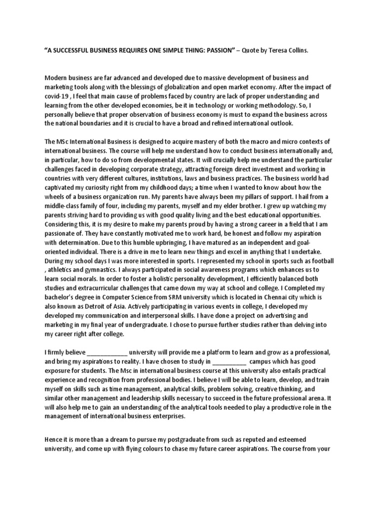 Considering this, it is my desire to make my parents proud by having a strong career in a field that I am