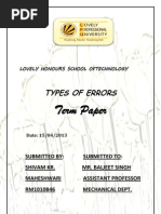 Write a short note (2-pages) on Errors in Measurements and Types of Errors.