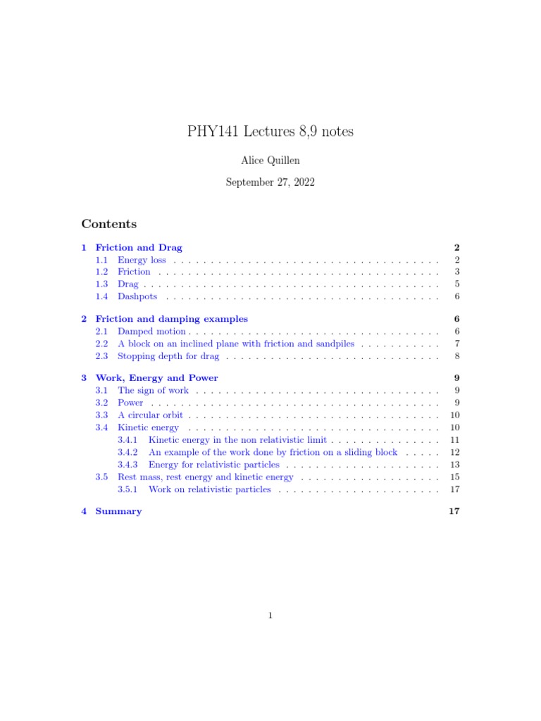 PHY141 Lectures 8,9 notes