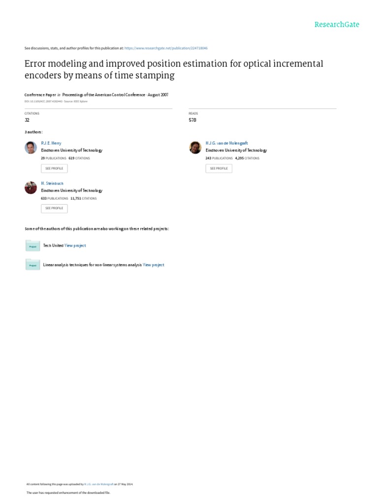R.J.E. Merry, M.J.G. van de Molengraft and M. Steinbuch are with the Secondly, different kinds of encoder imperfections, such as