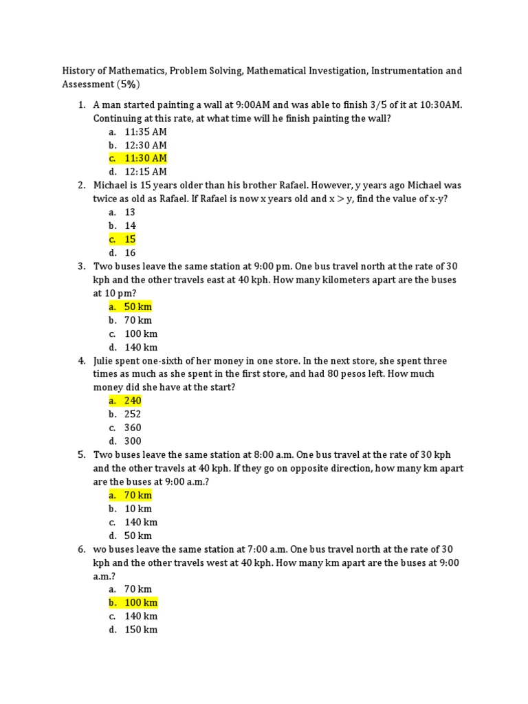 5. Two buses leave the same station at 8:00 a.m. One bus travel at the rate of 30 kph
