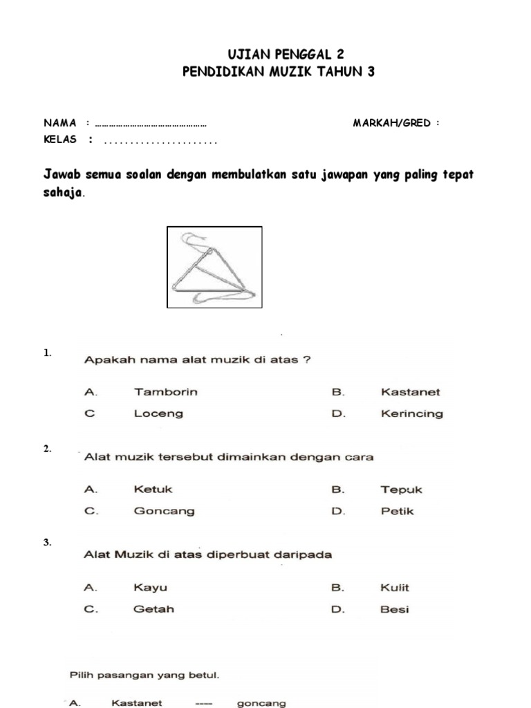 11. Namakan alat muzik yang ditunjukkan dalam rajah di bawah.