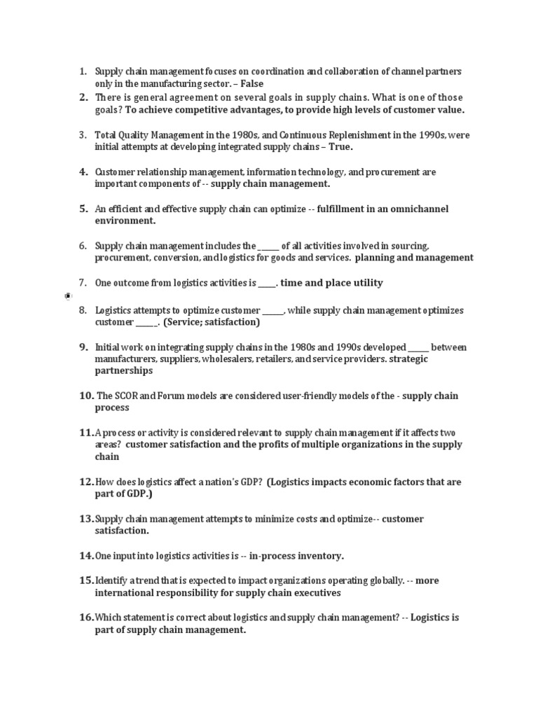 16. Which statement is correct about logistics and supply chain management? -- Logistics is