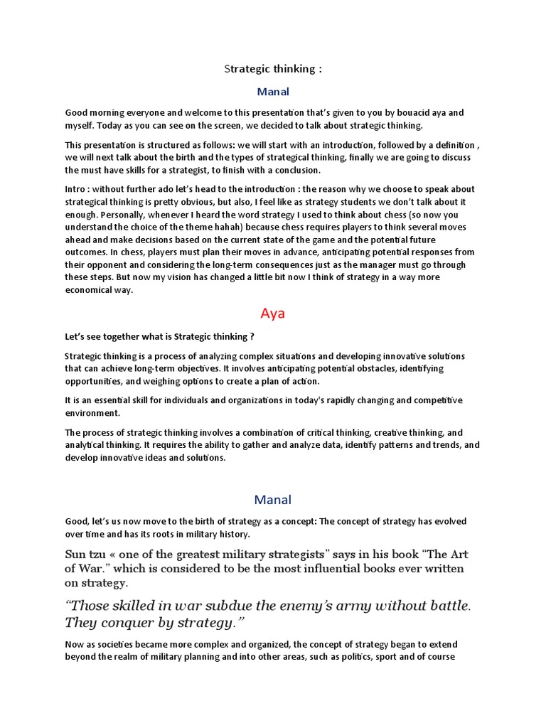 we will next talk about the birth and the types of strategical thinking, finally we are going to discuss