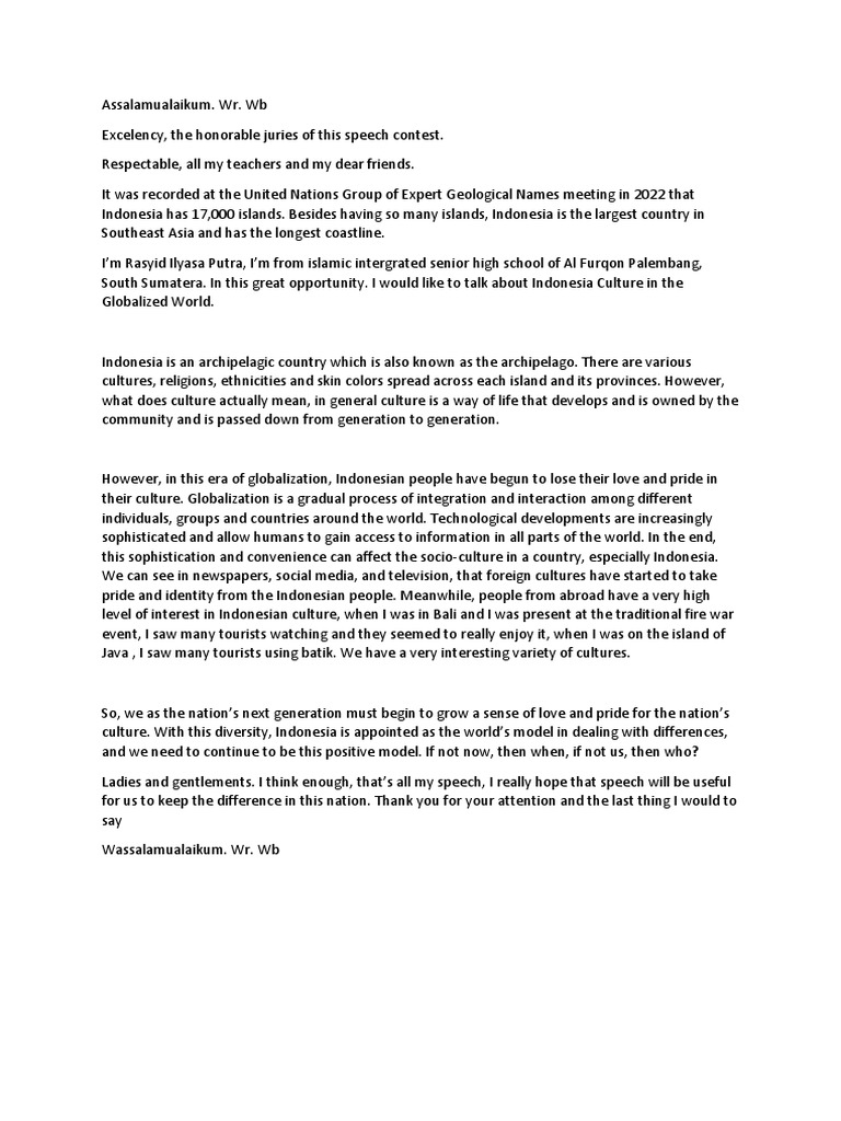 South Sumatera. In this great opportunity. I would like to talk about Indonesia Culture in the