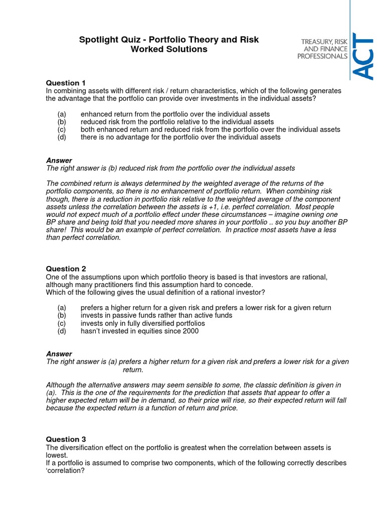 Spotlight Quiz - Portfolio Theory and Risk