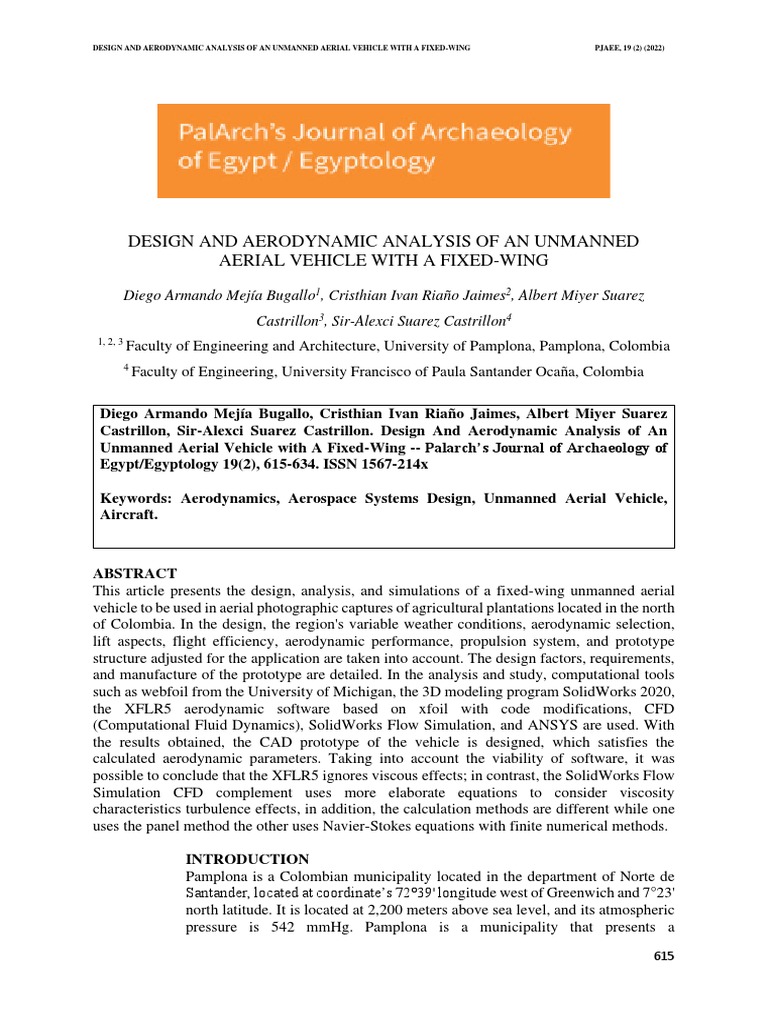DESIGN AND AERODYNAMIC ANALYSIS OF AN UNMANNED AERIAL VEHICLE WITH A FIXED-WING PJAEE, 19 (2) (2022)