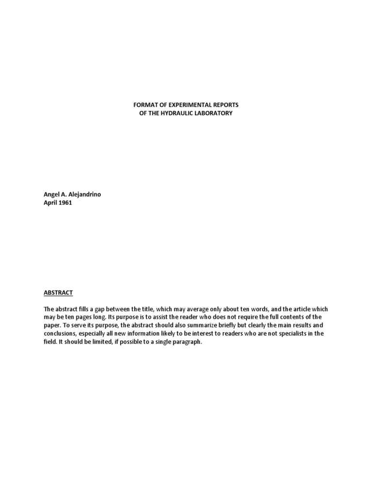 FORMAT OF EXPERIMENTAL REPORTS OF THE HYDRAULIC LABORATORY
