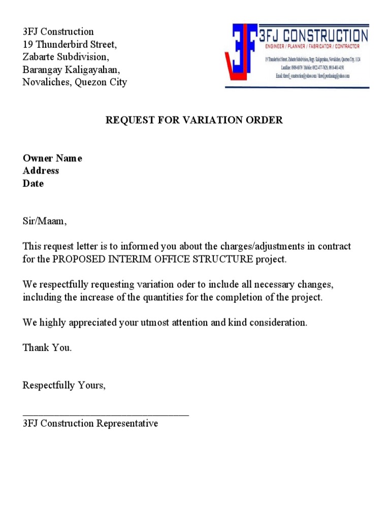 We respectfully requesting variation oder to include all necessary changes,