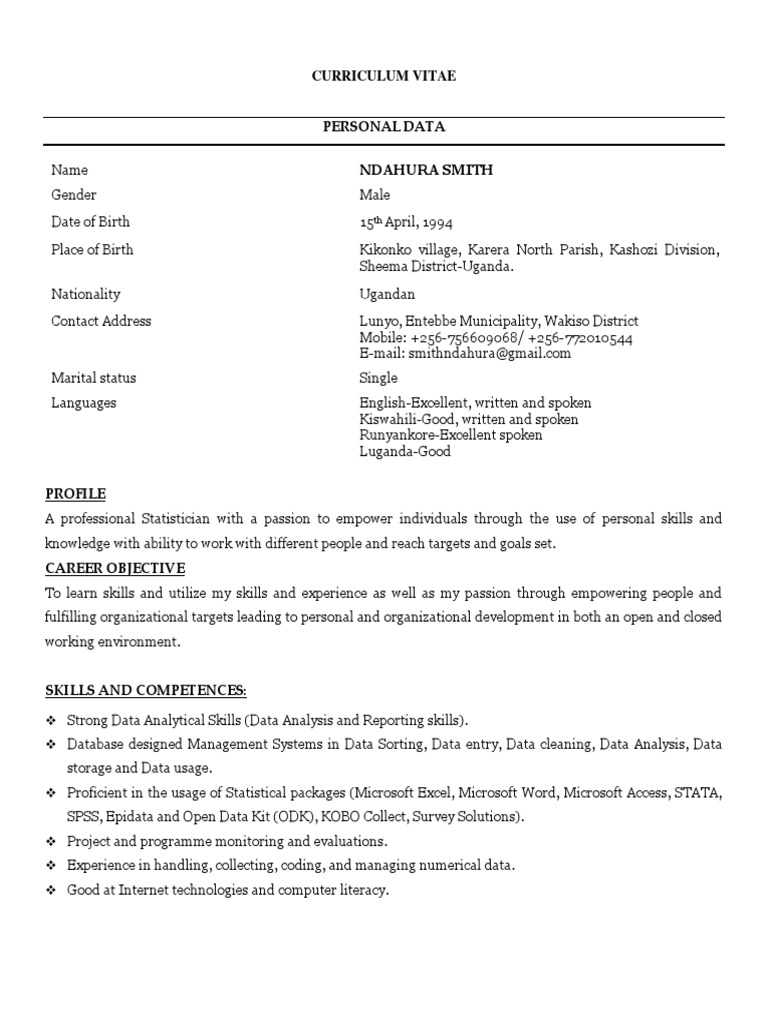 ❖ Proficient in the usage of Statistical packages (Microsoft Excel, Microsoft Word, Microsoft Access, STATA,