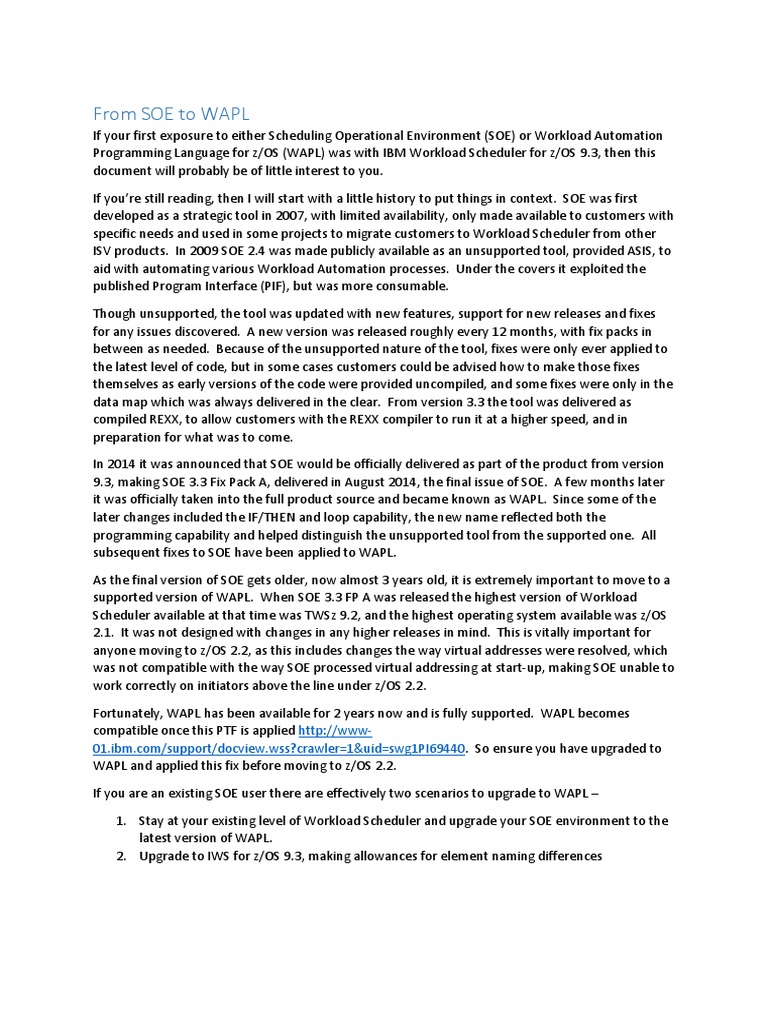 If your first exposure to either Scheduling Operational Environment (SOE) or Workload Automation