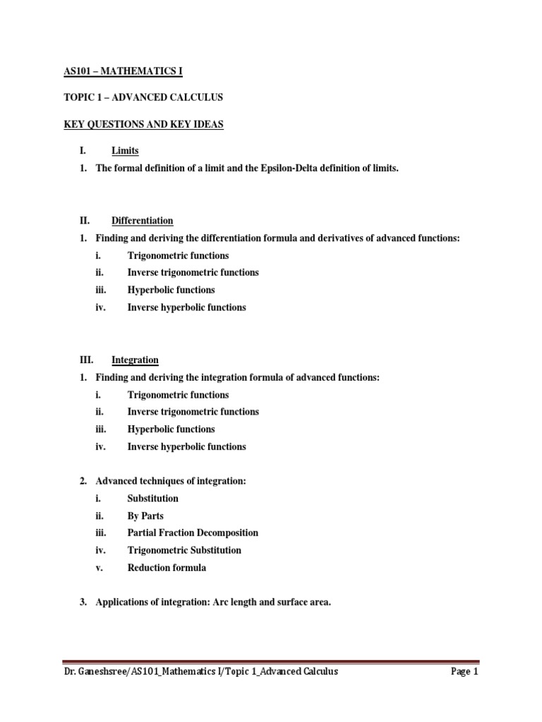 1. The formal definition of a limit and the Epsilon-Delta definition of limits.