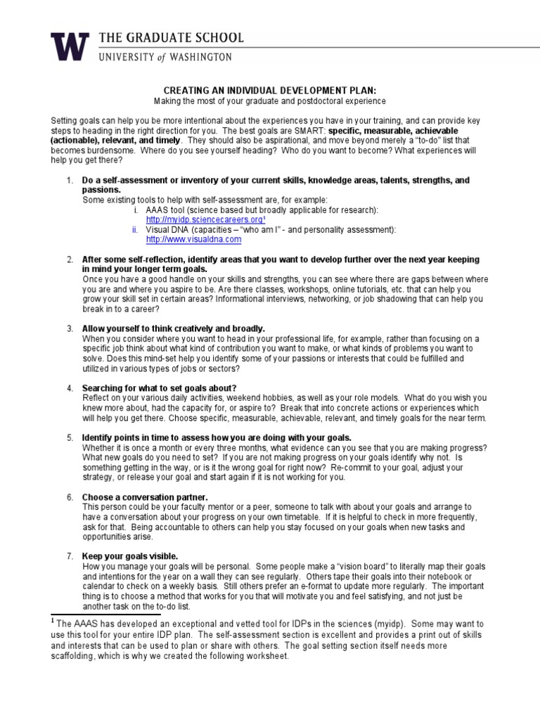 CREATING AN INDIVIDUAL DEVELOPMENT PLAN: