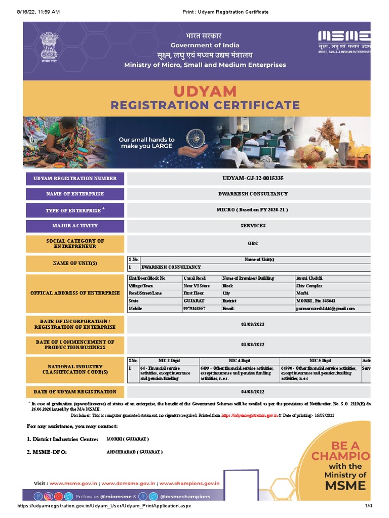 Printed from https://udyamregistration.gov.in & Date of printing:- 16/08/2022