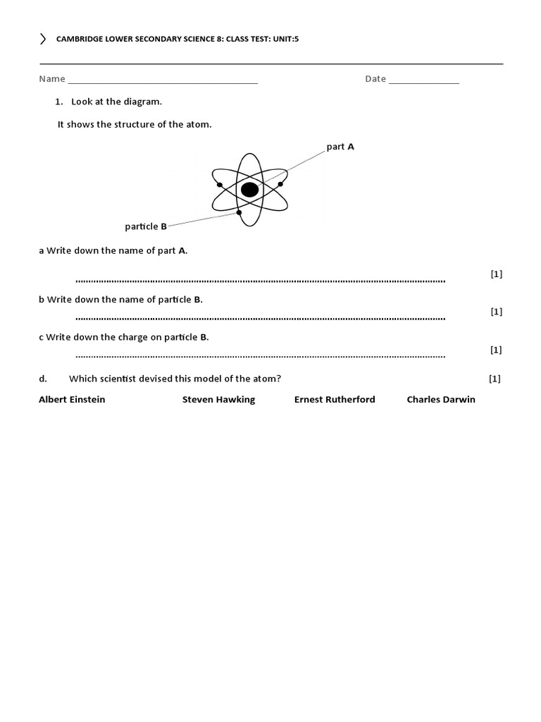 CAMBRIDGE LOWER SECONDARY SCIENCE 8: CLASS TEST: UNIT:5