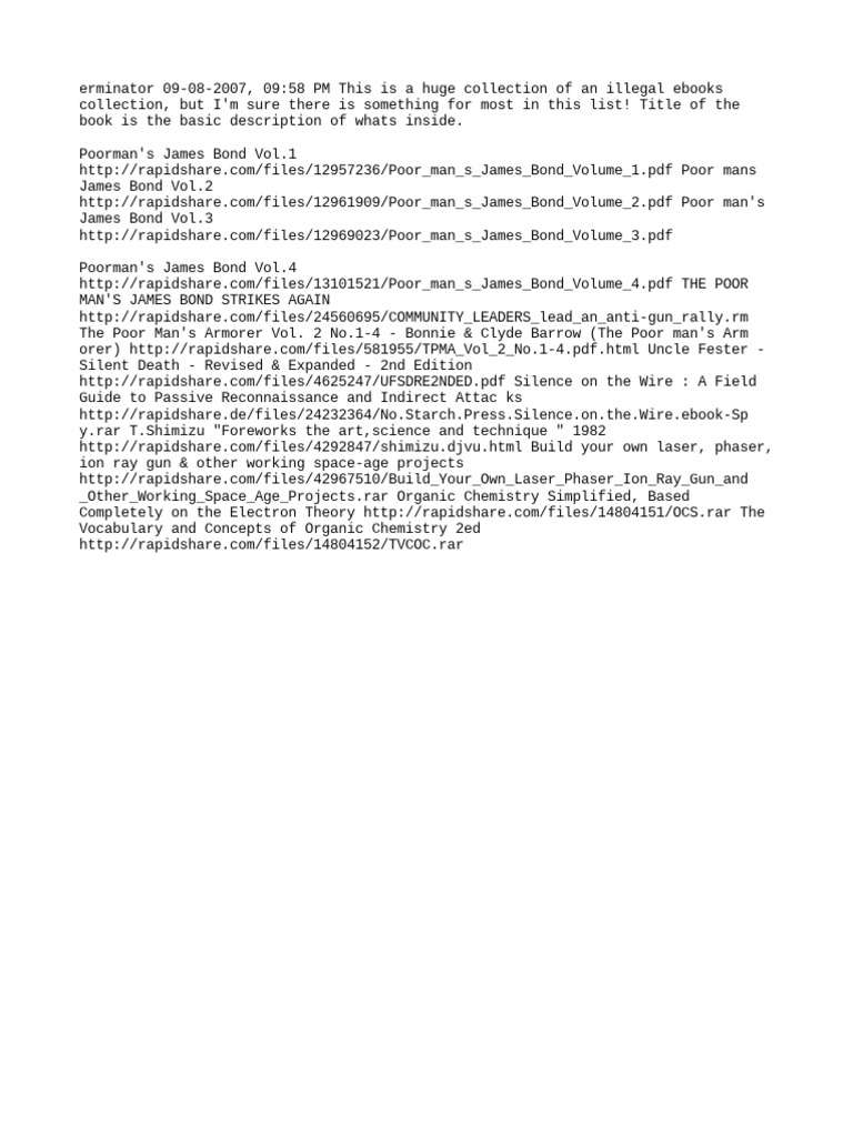 erminator 09-08-2007, 09:58 PM This is a huge collection of an illegal ebooks