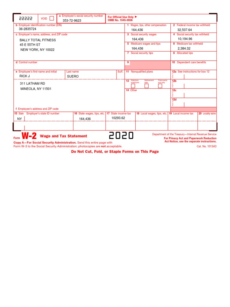 Wage and Tax Statement 2020 Department of the Treasury—Internal Revenue Service