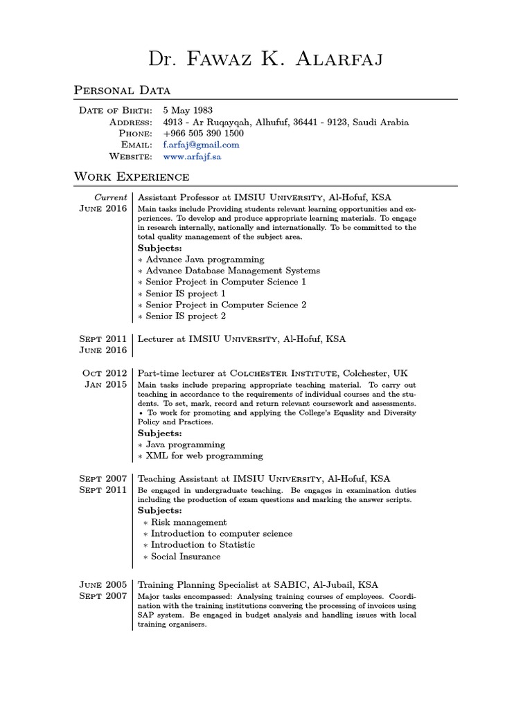 Sept 2011 Lecturer at IMSIU University, Al-Hofuf, KSA