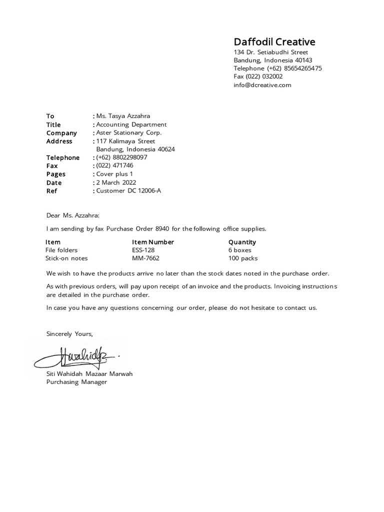 To : Ms. Tasya Azzahra